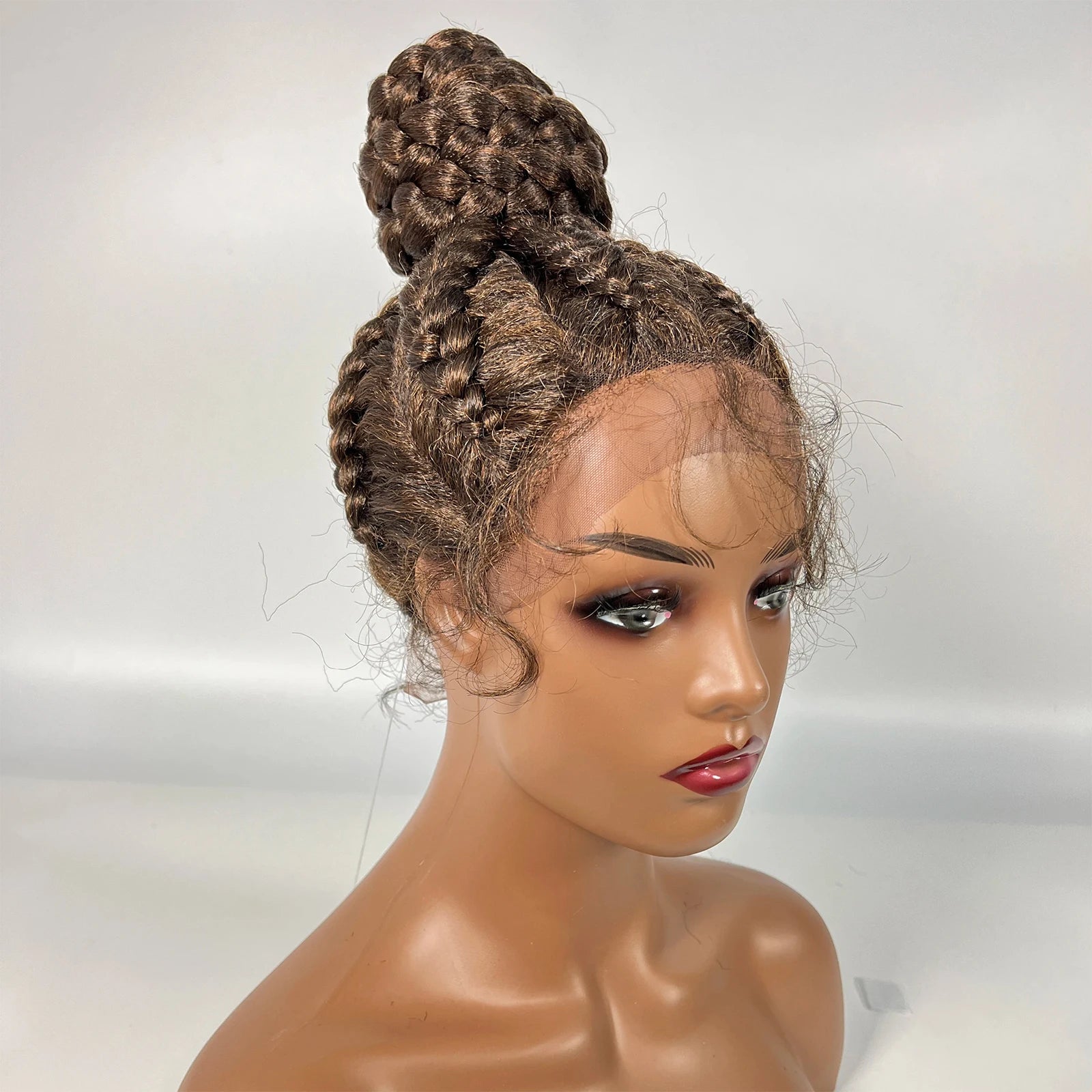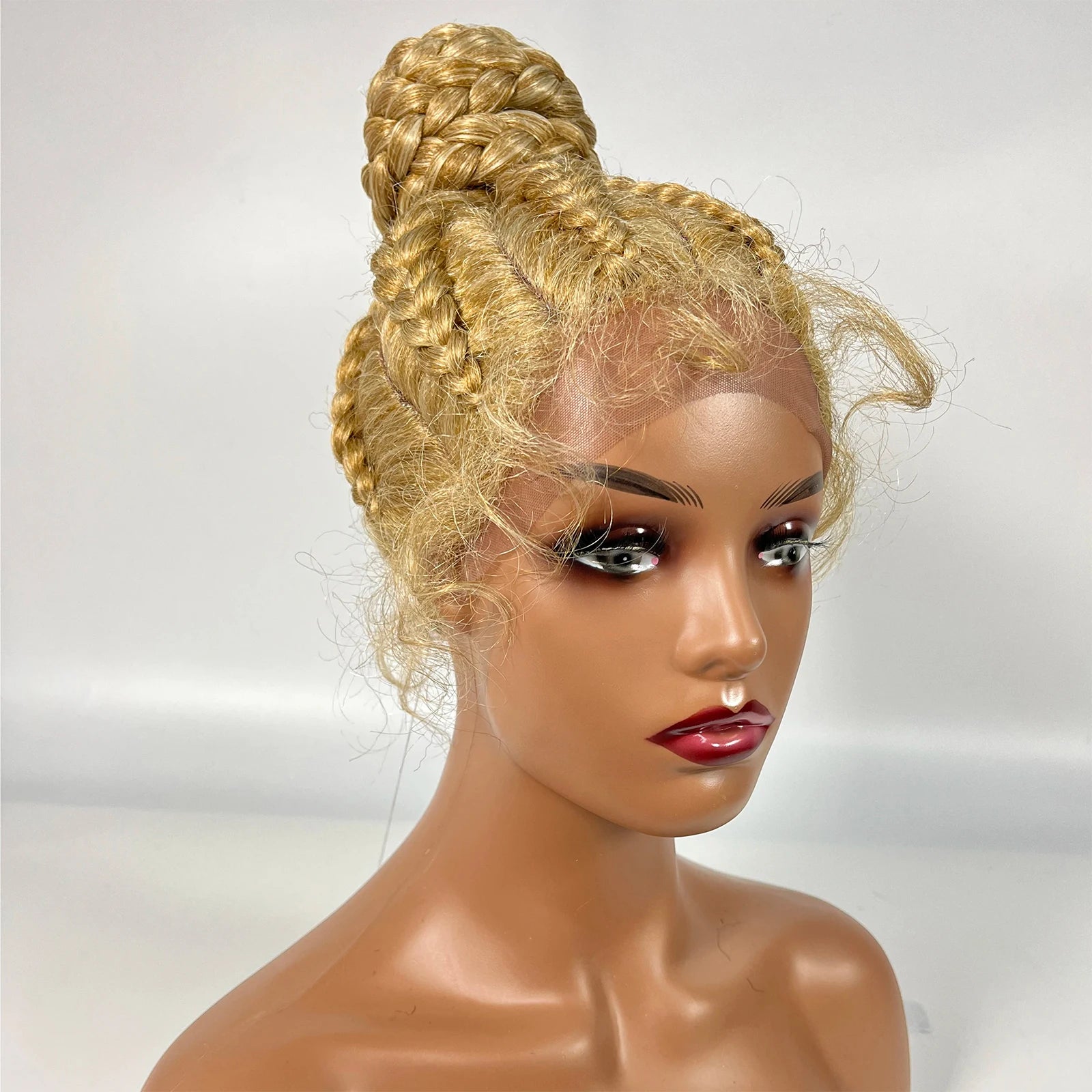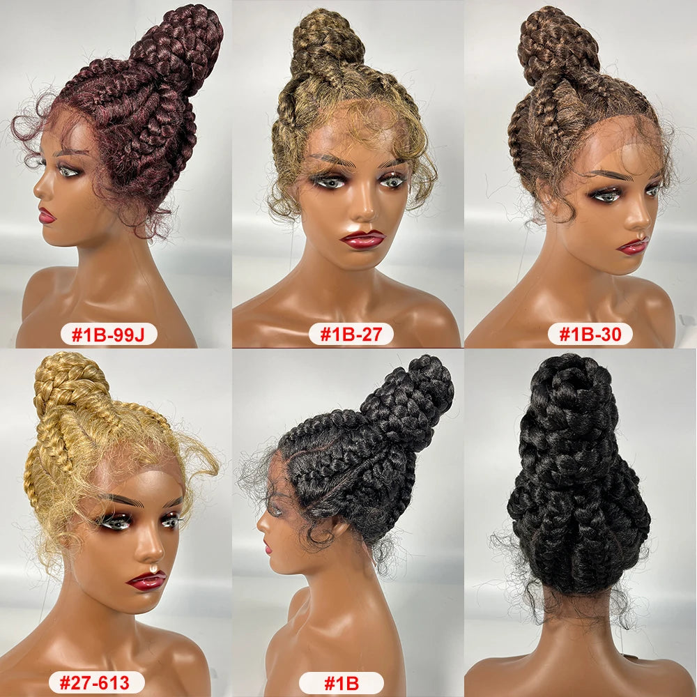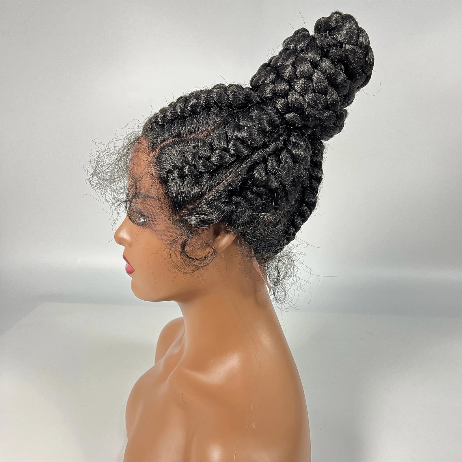 Synthetic Braided Updo Lace Front Wig Box Braids Wig For Black Women Cornrow Braids Lace Wigs Frontal Afro Wig New Style Hair