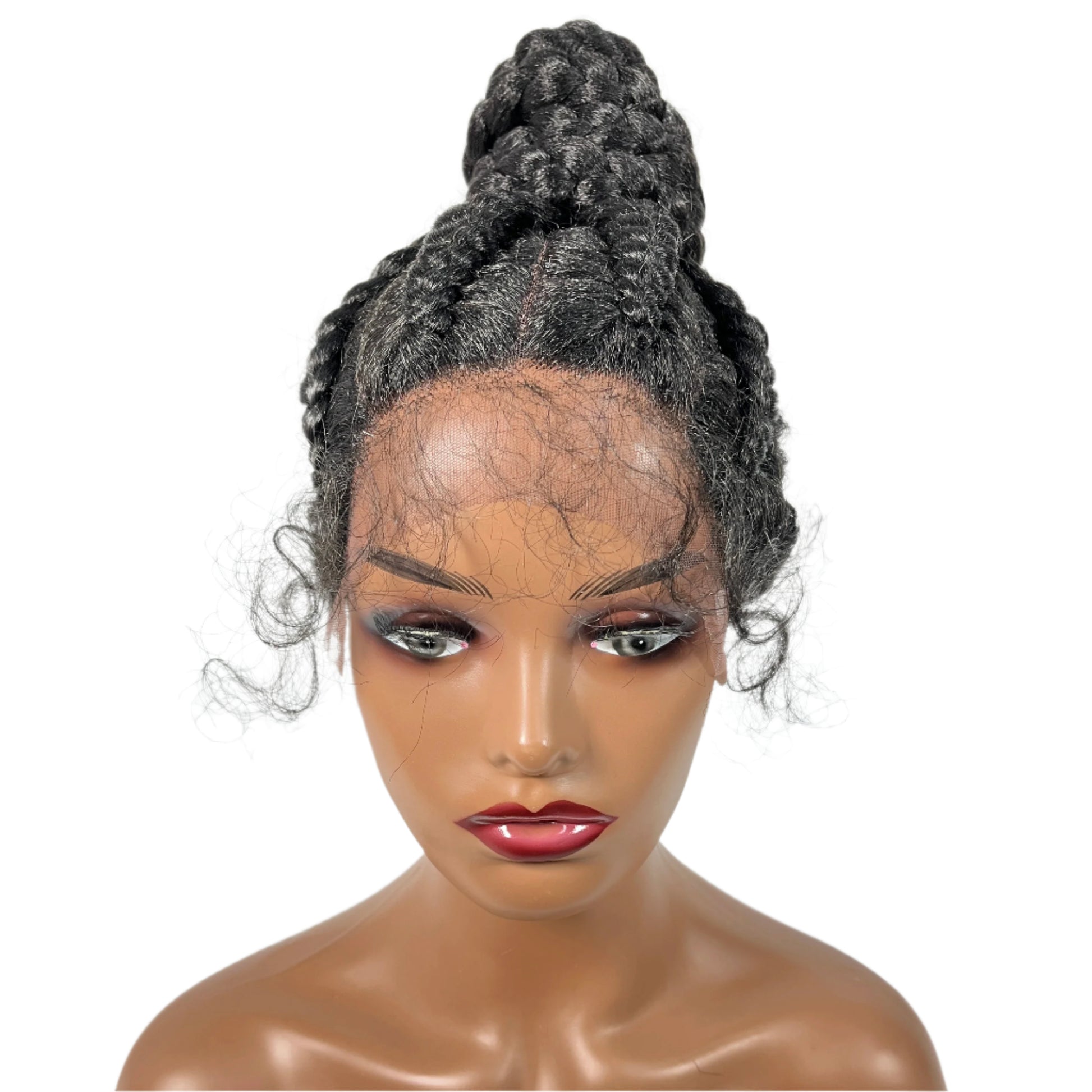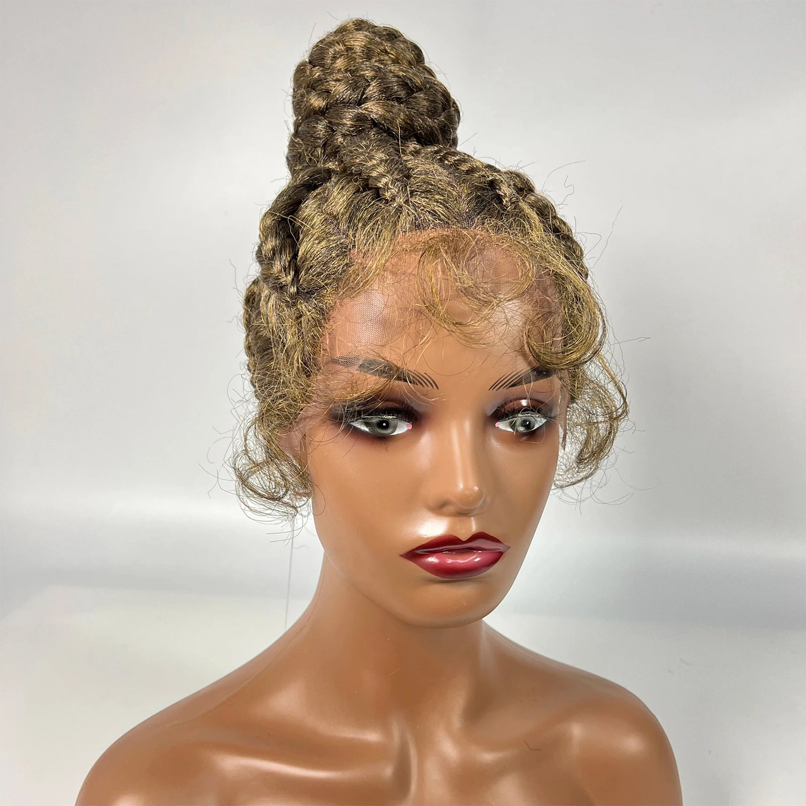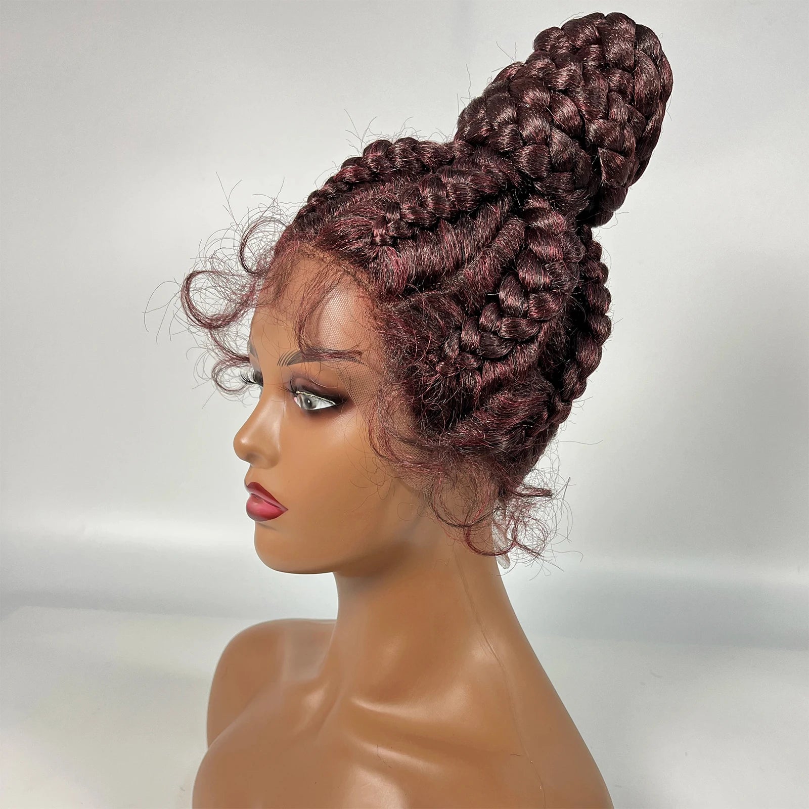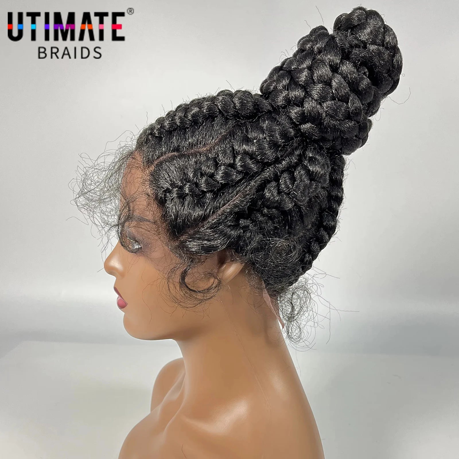 Synthetic Braided Updo Lace Front Wig Box Braids Wig For Black Women Cornrow Braids Lace Wigs Frontal Afro Wig New Style Hair